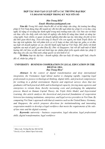 Từ khóa: hợp tác đại học - doanh nghiệp, đào tạo luật, kỹ năng nghề luật, chuyển