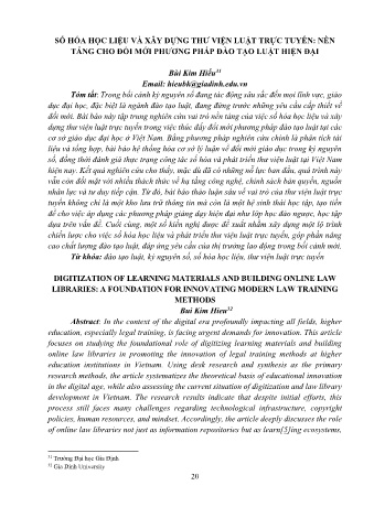 Từ khóa: đào tạo luật, kỷ nguyên số, số hóa học liệu, thư viện luật trực tuyến