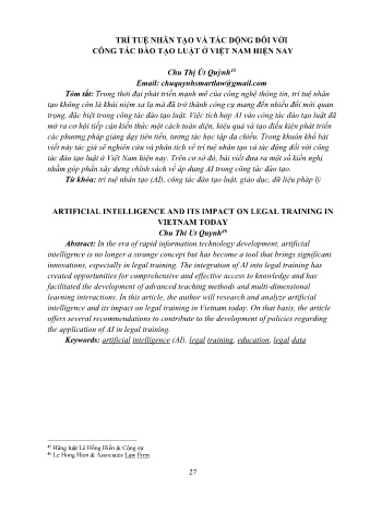 intelligence and its impact on legal training in Vietnam today. On that basis, the article