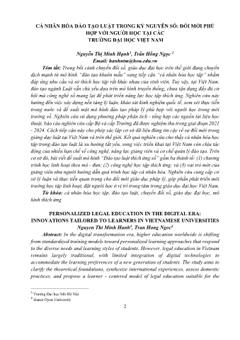 Từ khóa: cá nhân hóa học tập, đào tạo luật, chuyển đổi số, giáo dục đại học, mô
