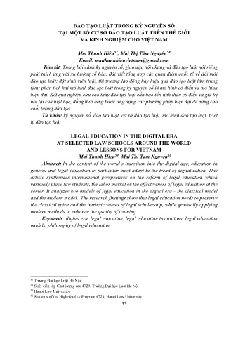 Tóm tắt: Trong bối cảnh kỷ nguyên số, giáo dục nói chung và đào tạo luật nói riêng