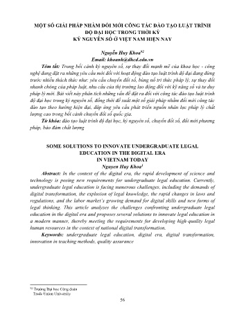 Từ khóa: đào tạo luật trình độ đại học, kỷ nguyên số, chuyển đổi số, đổi mới phương