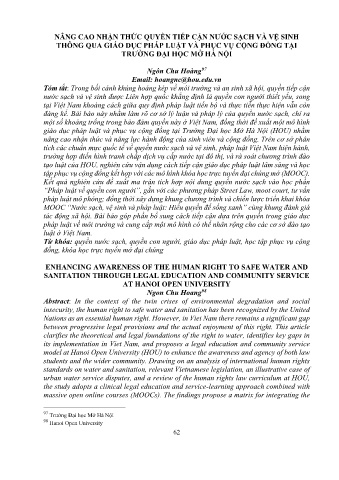 Từ khóa: quyền nước sạch, quyền con người, giáo dục pháp luật, học tập phục vụ cộng