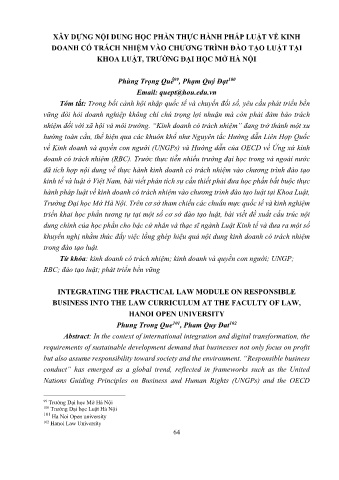 XÂY DỰNG NỘI DUNG HỌC PHẦN THỰC HÀNH PHÁP LUẬT VỀ KINH