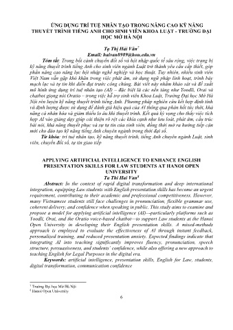 Từ khóa: trí tuệ nhân tạo, kỹ năng thuyết trình, tiếng Anh chuyên ngành Luật, sinh
